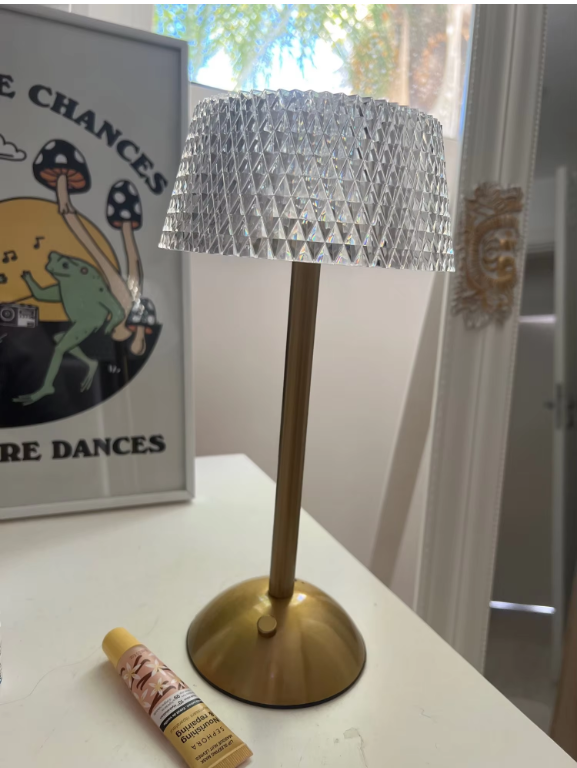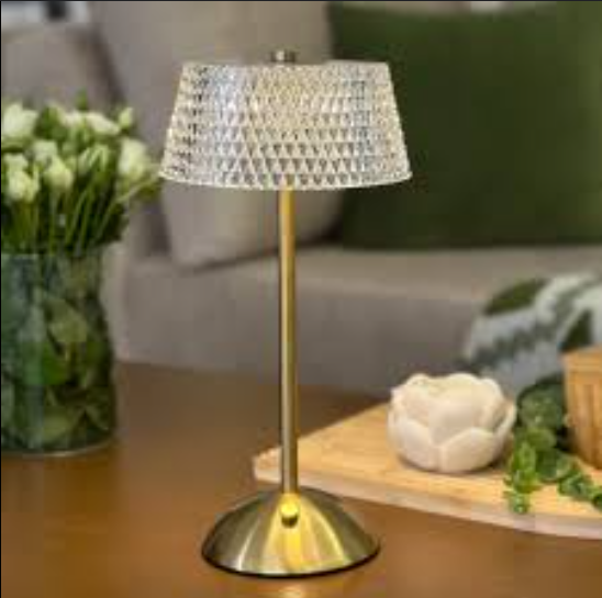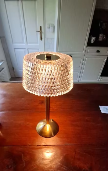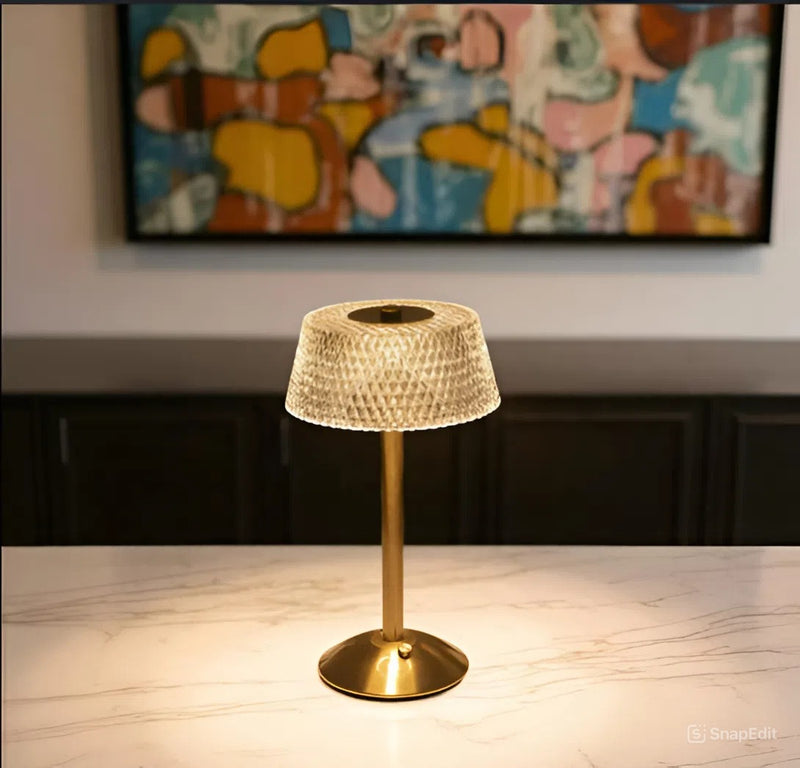 Crafted from premium aluminum and crystal cut glass, it emits a warm, golden glow that creates a calm, inviting atmosphere.